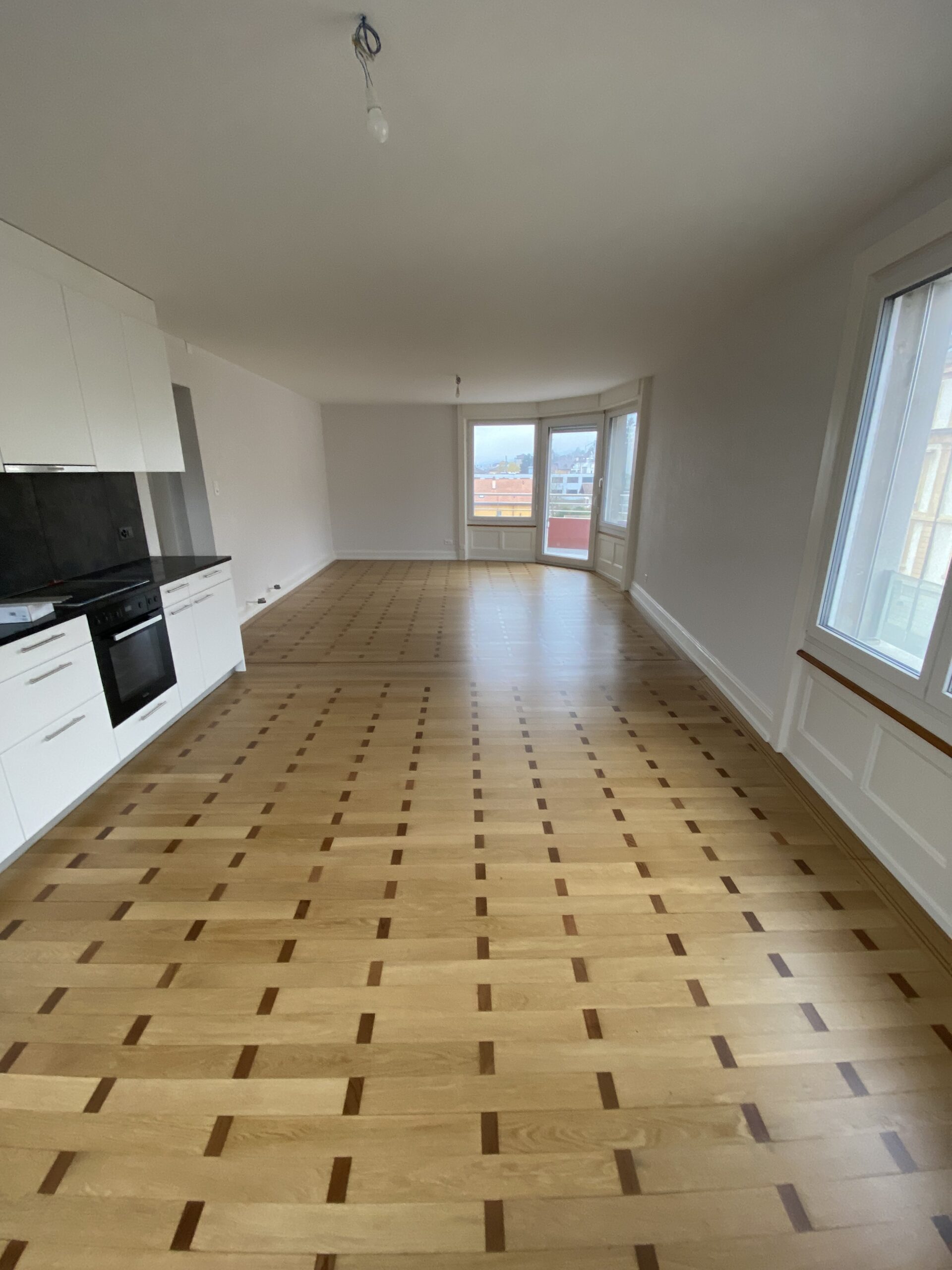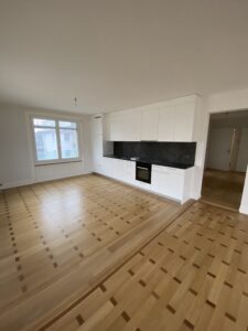 Appartement de 4.0 pièces comprenant 1 cuisine agencée, 1 séjour, 2 chambres, 1 salle de bains/WC, 1 WC séparé et 1 balcon.