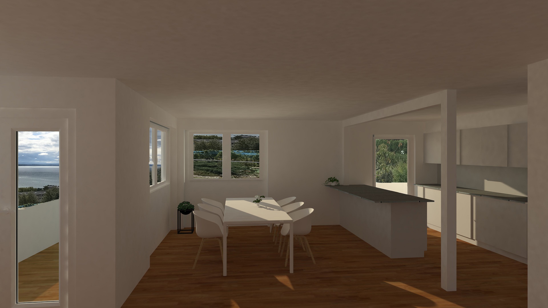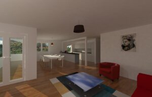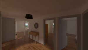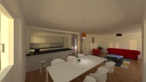 Appartement de 4.5 pièces comprenant, une cuisine agencée ouverte sur un séjour, une salle à manger, une salle de bains/WC, une salle de douche/WC avec colonne de lavage, trois chambres, un hall, une terrasse, une cave et 1 place de parc intérieure.